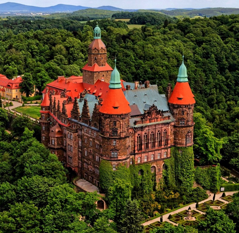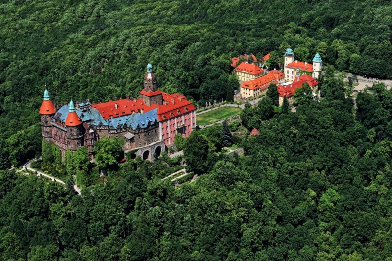 Das ehemalige Schloss Fürstenstein („Perle des Schlesiens") ist das größte Schloss Schlesiens, das drittgrößte Polens und eines der größten Schlösser Europas. Er erhebt sich majestätisch auf einem 395 Meter hohen Felsen über dem Tal des kleinen Płecznica-Flusses. Der Wald-Gebirgscharakter des Landschaftsschutzparks zu Książ, auf dessen Gebiet aich das Schloss befindet, macht dieses Landschaftbild noch romantischer . Eine solche Lage bei so großen Dimensionen des Bauwerks kommt in Europa selten vor.